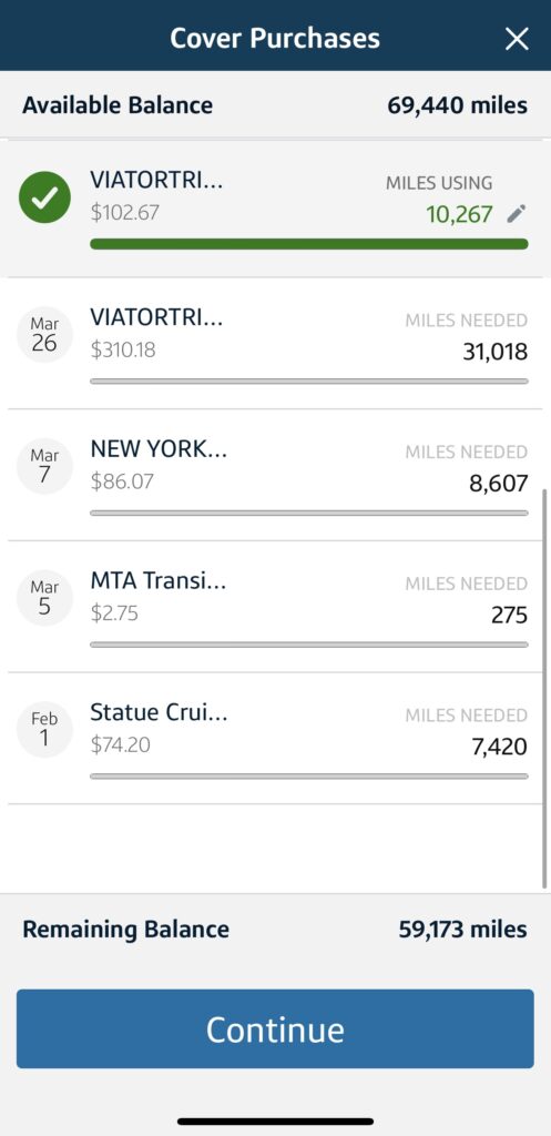 This option gives you the ability to get reimbursed for any travel expenses you charged to your card in the last 90 days.
