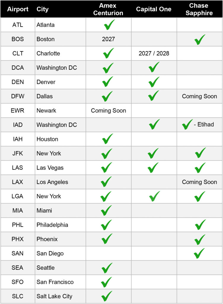 NOTE: Of the 3 bank lounges, the Chase Sapphire Lounges are the easiest to bring guests into – more detail below.