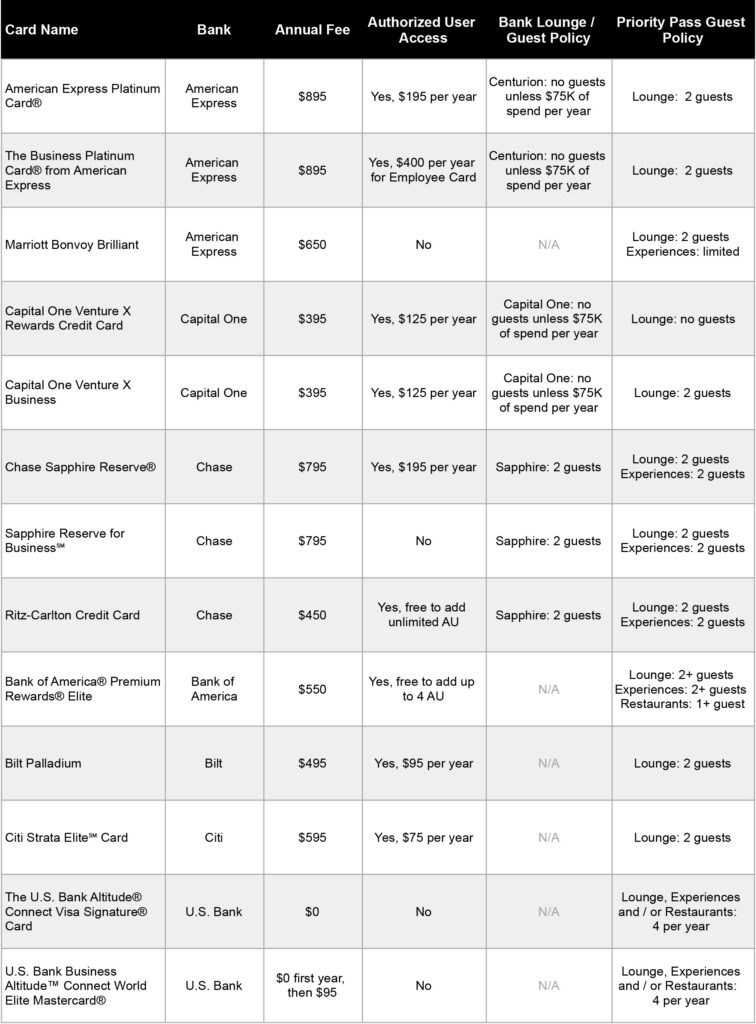 CREDIT CARD LOUNGE ACCESS COMPARISON